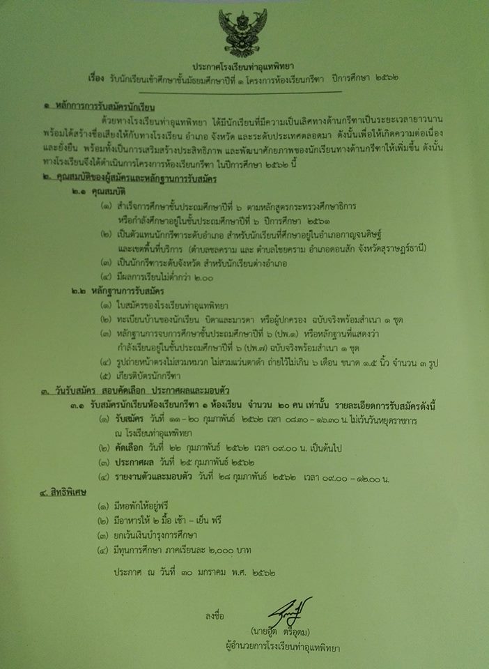 ระเบียบโรงเรียนท่าอุแทพิทยา